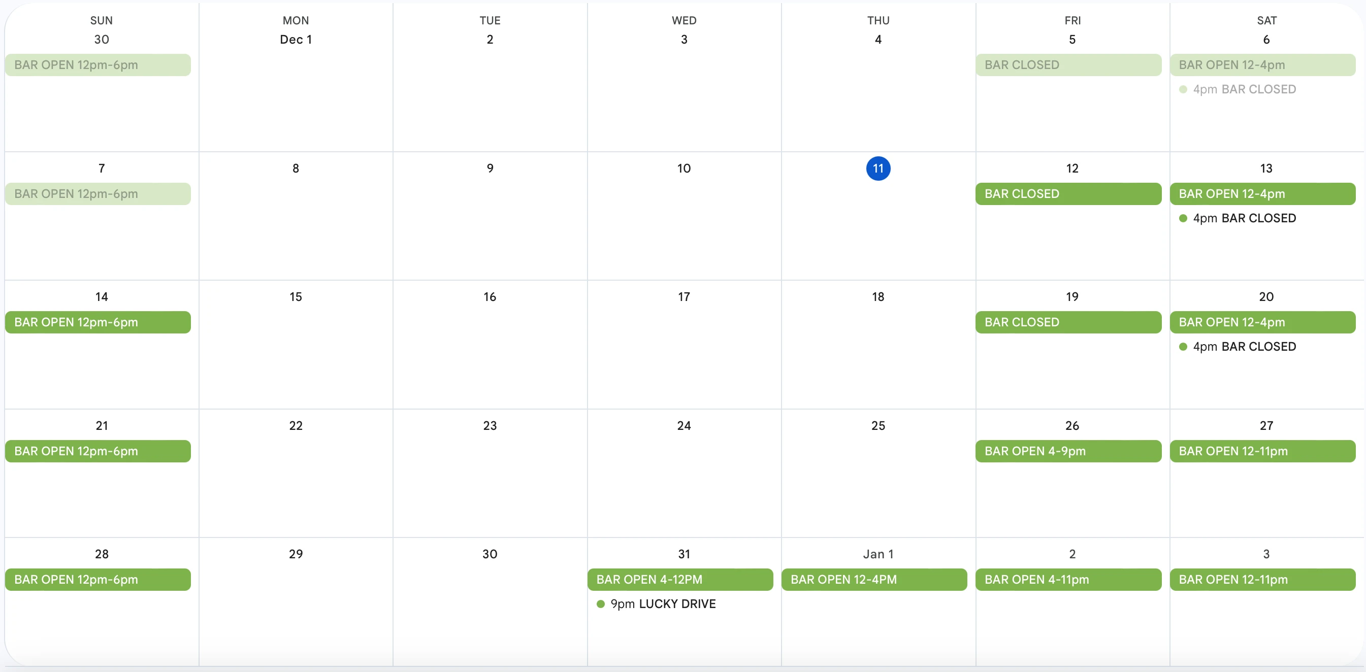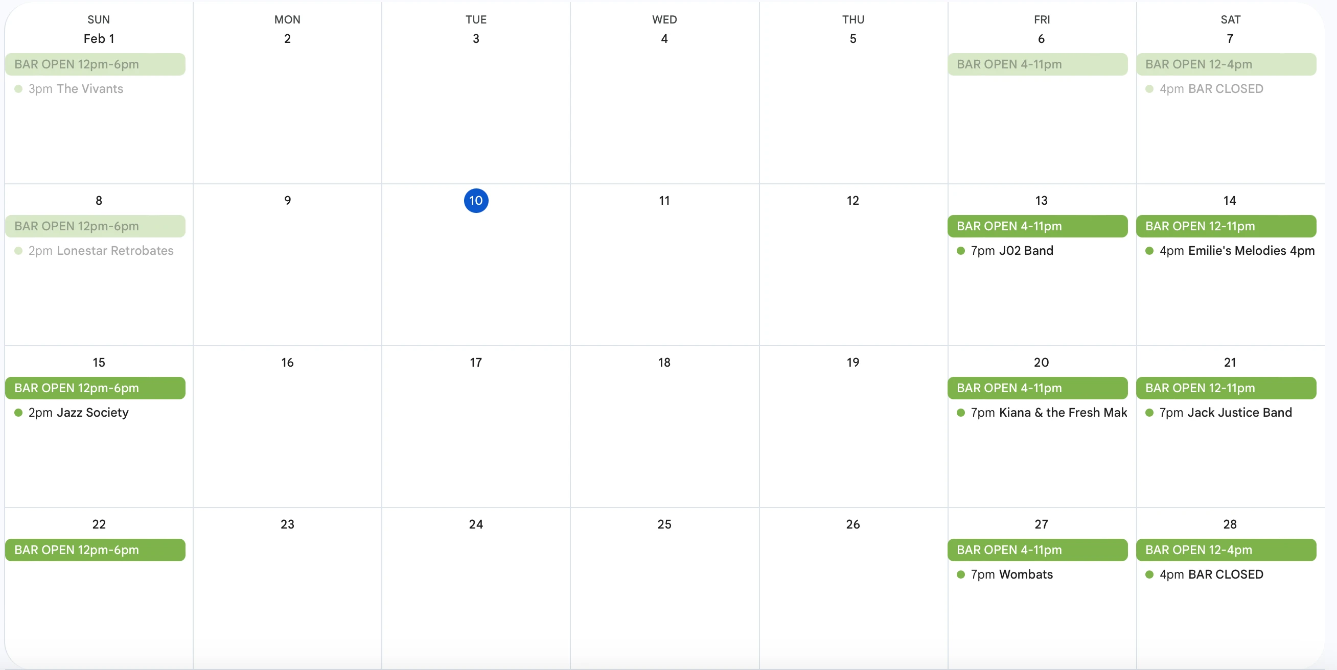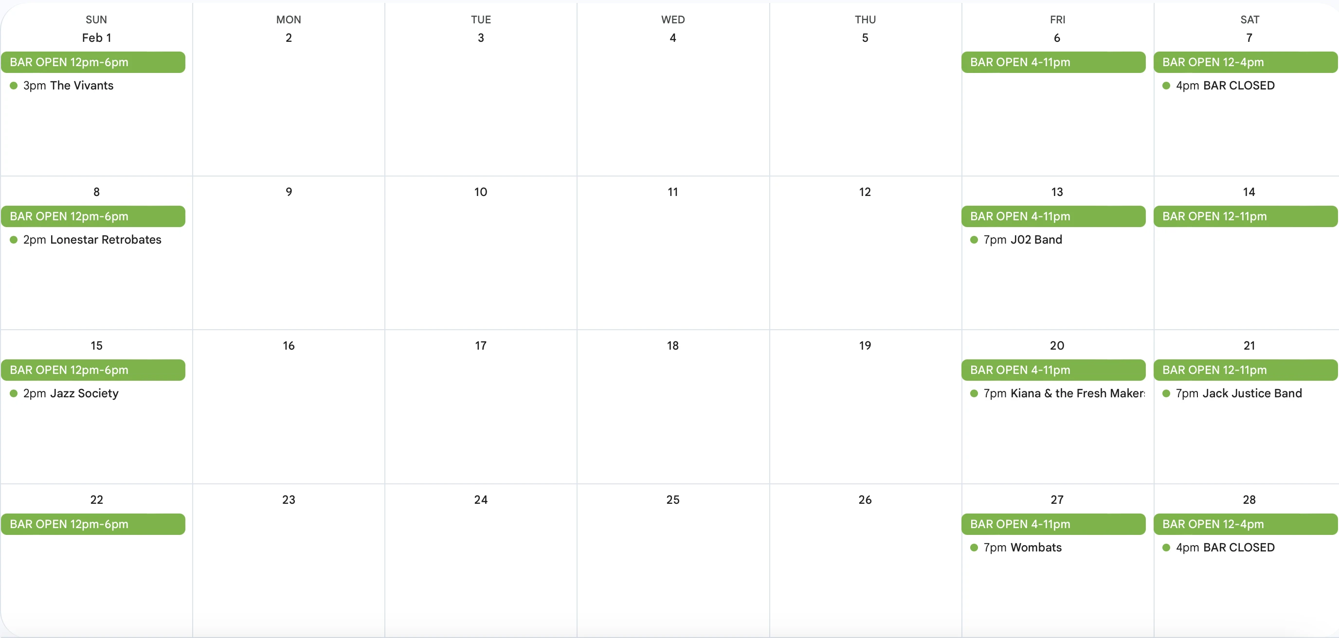 Join us for live music Friday and Saturdays! Hours of operations Friday 4-1130pm, Saturday 12-1130pm and Sunday 12-6pm.